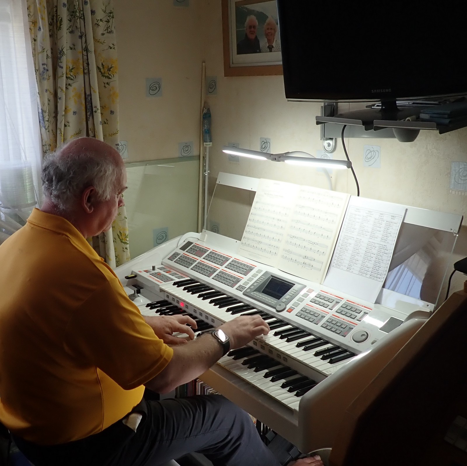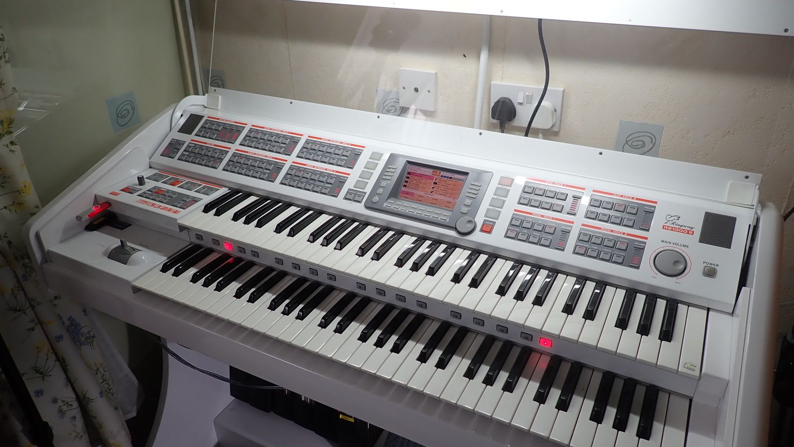 The Ringway 1000E replaces the aging Yamaha HS8 and is in Artic White rather than the black of the Yamaha, which brightens the corner. The organ has a new light stand as well to illuminate the music and I have put in a desk lamp on the floor to better illuminate the pedals. I have wanted to get to at least 5 octaves on both manuals and although I would like a full radiating pedal board, at least the Ringway has two octaves and some 400 sounds most of which are very realistic. I found out that by default the polyphony on the pedals was turned off and being able to turn this on, gives more playing opportunities.