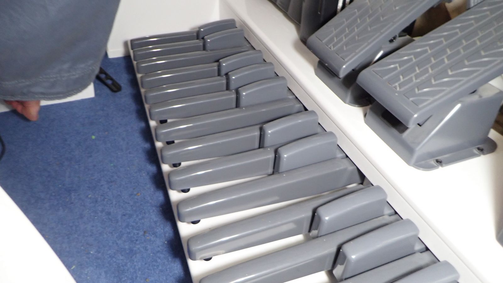 Two expression pedals and two octaves of pedals and foot stitches on the expression pedals.