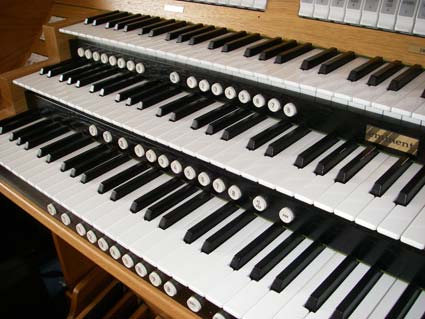 I bought my 3 manual Eminent organ in April 2005. I took some advice from my organ tutor (Simon Pusey) in buying the organ. We looked at many different makes and models especially looking at value for money.Simon and I looked at several different organs before buying the Eminent organ. He bought the Eminent organ because it sounded much more like a traditional English pipe church organ rather than a European sounding one. The sound made by the Eminent is synthesised in several stages to give a attack on the notes (the chiff) followed by the sound. Having looked and listened to other makes that just used recorded sounds, the Eminent organ sounded much better and could be voiced to fit the local environment. I chose the 3 manual version of the Eminent organ known in the uk as the Alpha 300/32 so that I could grow into it. I also decided that if I was only going to buy one organ then I might as well get what the kids and I wanted, rather than getting a smaller Eminent organ and then having to upgrade the Eminent organ to a 3 manual eminent organ in a few years time. We didn't put many toe pistons on the Eminent organ as we didn't think that in the first few years we would need many of them, but all the capacity is there and if we need more generals then we can add them. Once the toe piston board has been fitted then other pistons can be added cheaply. That's around about £40 per piston. I chose a radiating concave 32 note pedal board.