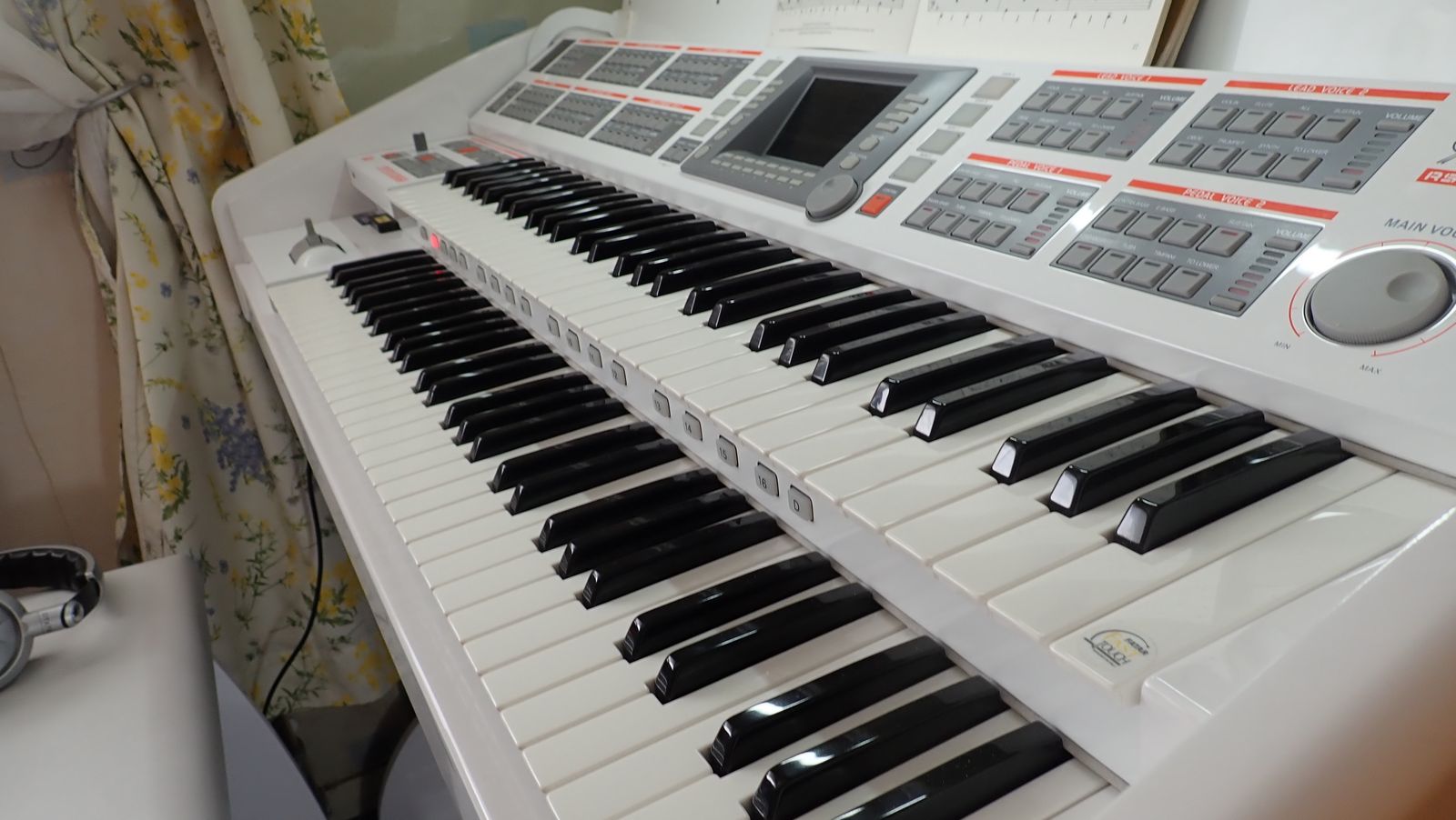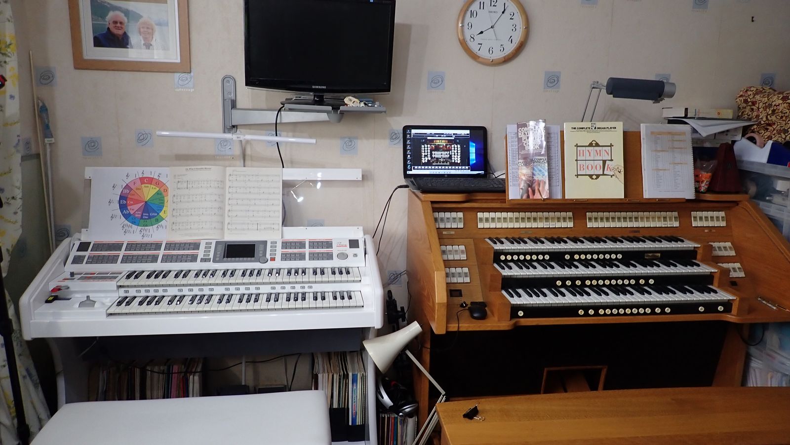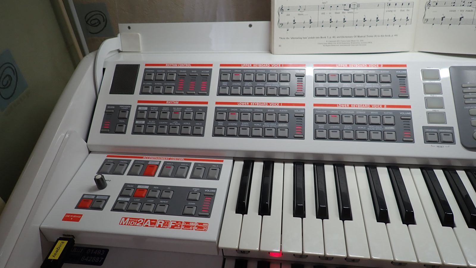 The Ringway 1000E replaces the aging Yamaha HS8 and is in Artic White rather than the black of the Yamaha, which brightens the corner. The organ has a new light stand as well to illuminate the music and I have put in a desk lamp on the floor to better illuminate the pedals. I have wanted to get to at least 5 octaves on both manuals and although I would like a full radiating pedal board, at least the Ringway has two octaves and some 400 sounds most of which are very realistic. I found out that by default the polyphony on the pedals was turned off and being able to turn this on, gives more playing opportunities.