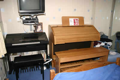 I bought my 3 manual Eminent organ in April 2005. I took some advice from my organ tutor (Simon Pusey) in buying the organ. We looked at many different makes and models especially looking at value for money.Simon and I looked at several different organs before buying the Eminent organ. He bought the Eminent organ because it sounded much more like a traditional English pipe church organ rather than a European sounding one. The sound made by the Eminent is synthesised in several stages to give a attack on the notes (the chiff) followed by the sound. Having looked and listened to other makes that just used recorded sounds, the Eminent organ sounded much better and could be voiced to fit the local environment. I chose the 3 manual version of the Eminent organ known in the uk as the Alpha 300/32 so that I could grow into it. I also decided that if I was only going to buy one organ then I might as well get what the kids and I wanted, rather than getting a smaller Eminent organ and then having to upgrade the Eminent organ to a 3 manual eminent organ in a few years time. We didn't put many toe pistons on the Eminent organ as we didn't think that in the first few years we would need many of them, but all the capacity is there and if we need more generals then we can add them. Once the toe piston board has been fitted then other pistons can be added cheaply. That's around about £40 per piston. I chose a radiating concave 32 note pedal board.